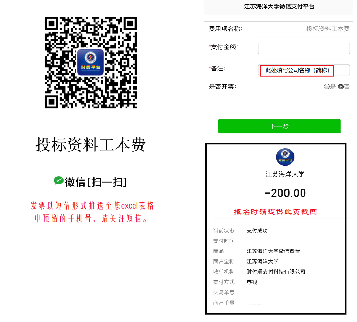 购买招标文件费200元。请用微信扫描下图缴费。投标资料工本费如需开发票,请下载附件:《缴费平台开具电子发票登记簿》,填写完整后将excel版本文件与报名材料一起发送至报名邮箱。请注意:发票只能缴费当月开具,不接受报名结束后补开发票。发票为电子票,发至登记簿中登记的邮箱。